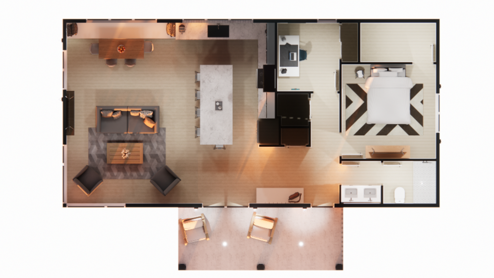 2 Bedrooms, 1 Bathroom Cabin Plan